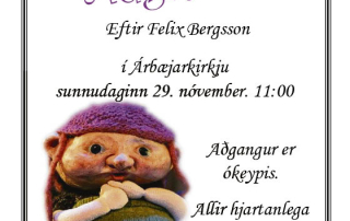 Fyrsti sunnudagur í aðventu. Kirkjudagur Árbæjarsafnaðar. Sunnudagskólinn kl.11.00-Leikritið Ævintýrið um Augastein e.Felix Bergsson. Hátíðarguðsþjónusta kl.14.00. Sveiflubræður leika hálftíma fyrir guðsþjónustu. Söngfuglar,kór eldri borgara syngur ásamt kór Árbæjarkirkju. Einsöngvari Gissur Páll Gissurarson. Organisti og kórstjóri Kristina [...]